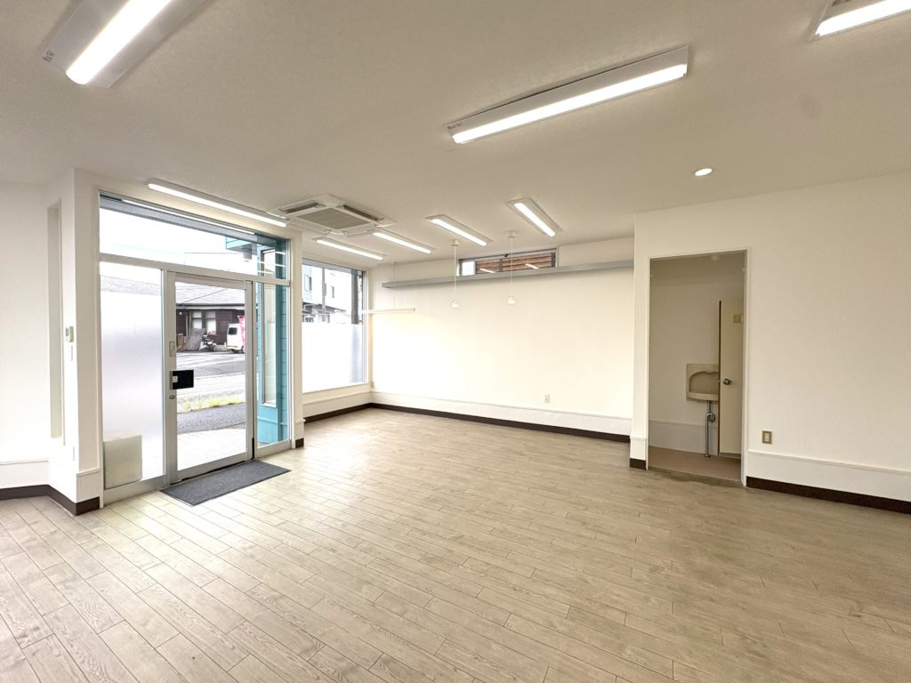 皆春道路に面した店舗です。事務所約25坪、倉庫約12坪、駐車場10台程度駐車可!