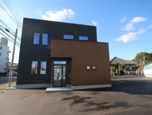 内装工事を主としている施主様の新事務所新築工事を施工しました。高級感のある外観、吹抜けのある